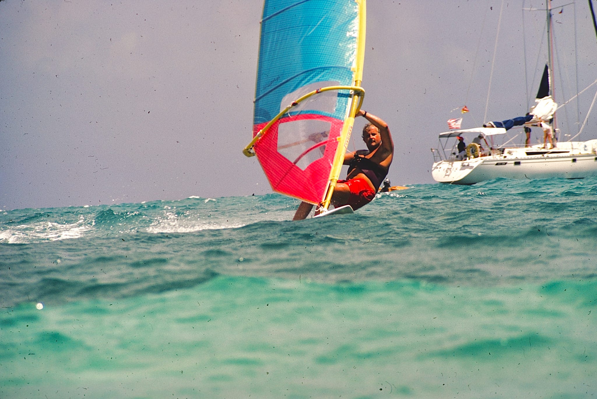 At 28, Andre chose uncertainty over salary. He painted houses in Westchester until the pull of somewhere else grew too strong. In 1983, he and Thea Ramsey established Windsurfing Antigua, teaching tourists to fly across turquoise waters with the Caribbean trade winds. They ran the school for four years, creating a sandcastle paradise on Jolly Beach until the Sahara dust came and Thea's cystic fibrosis called them home. She died in 1987 at 37, leaving Andre unmoored.
