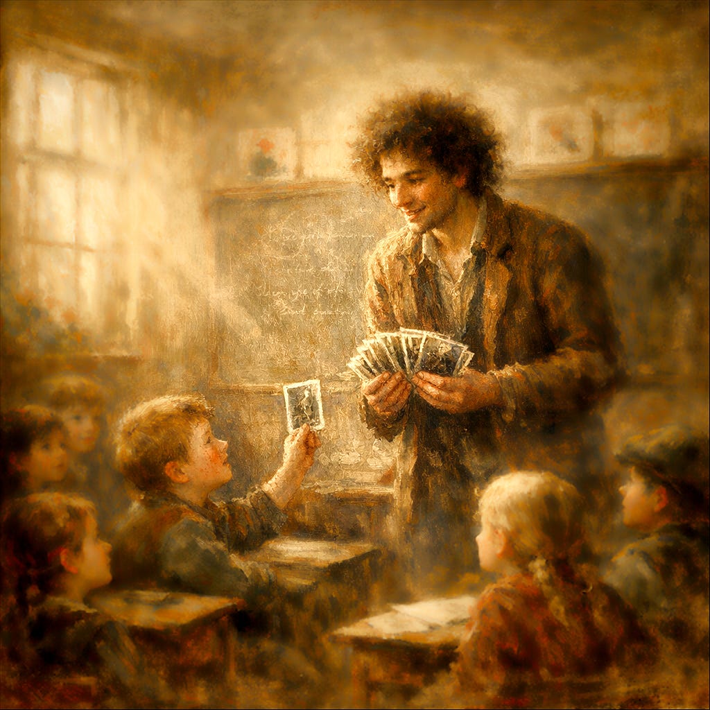 The first day, facing a classroom of ten-year-olds, I felt like a fraud. But then I pulled out the photographs — Paul’s old collection, the same carefully curated images — and said the words he’d said to me: “Pick one that speaks to you.”