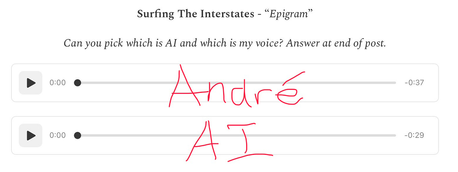 Can you pick which is AI and which is my voice? Answer at end of post.