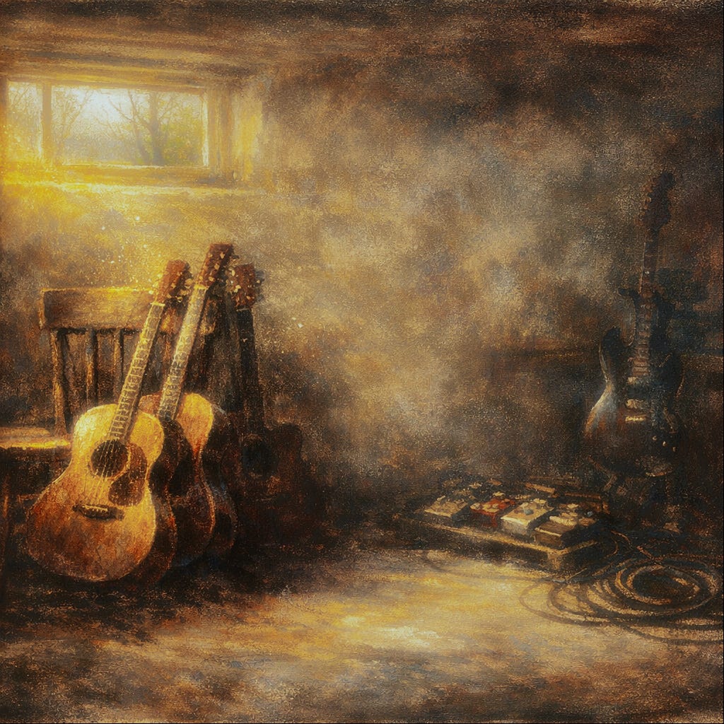 I should be clear about what I am and what I’m not. I’m a noodler, not a virtuoso. I don’t loop live. I’m more of a house framer — I lay the foundation first, get it plumb and square, then hang the drywall, then put on the siding and the roof. Multi-track recording suits my temperament the same way the carpenter’s blueprint approach suited the memoir. One layer at a time. Get each one right before moving to the next.