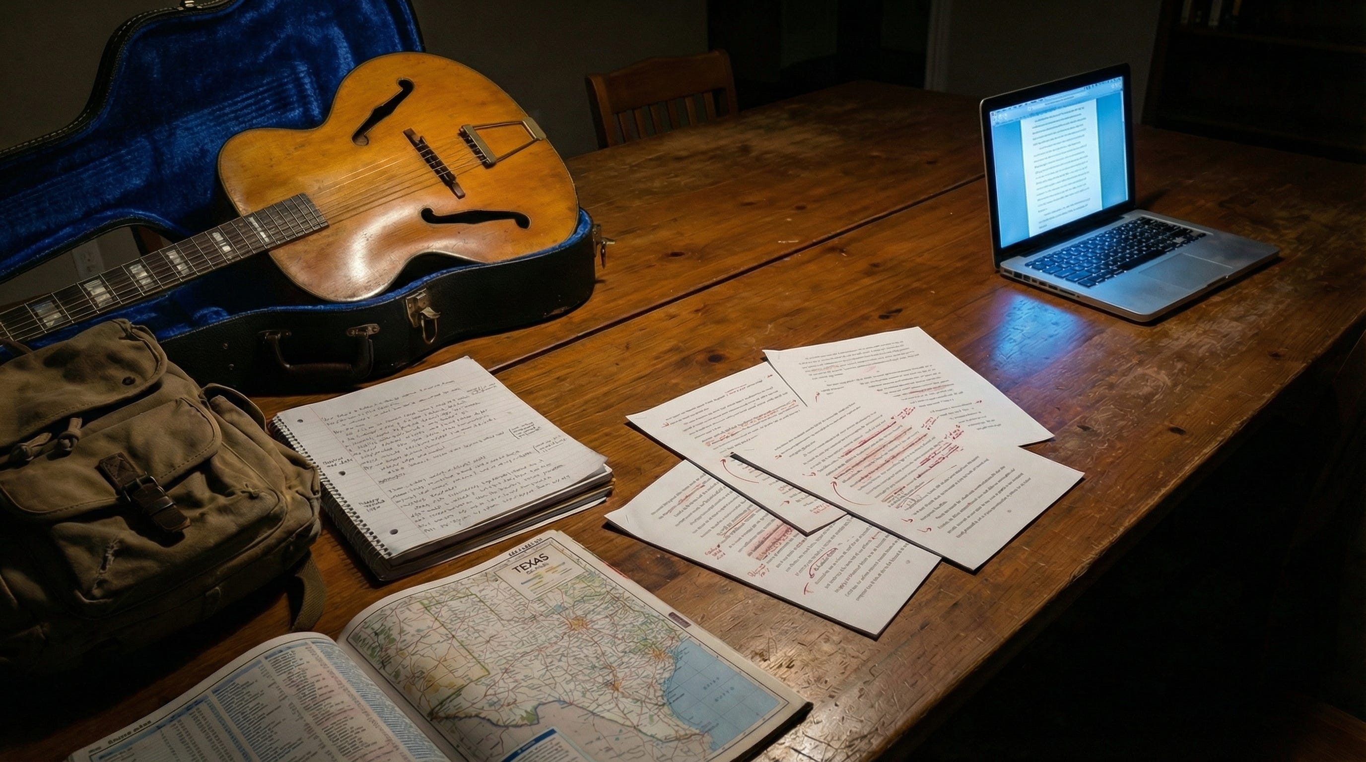 I open a new conversation in the Claude Project. Claude reads the Project Knowledge and knows immediately where we are. I might say, “Let’s work on Chapter 14. Here’s a voice memo I recorded this morning about crossing from El Paso into Big Bend country.” I paste the transcription. Claude tightens it, preserves my voice, sends it back. I read it and say, “Good, but this section about the landscape is too long. I want the reader to feel the emptiness, not get a geography lesson.” Claude cuts. I read again. “The transition into the memory of Steve is too abrupt.” Claude offers a bridge. I take half of it, rewrite the other half, and we have a working draft.